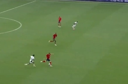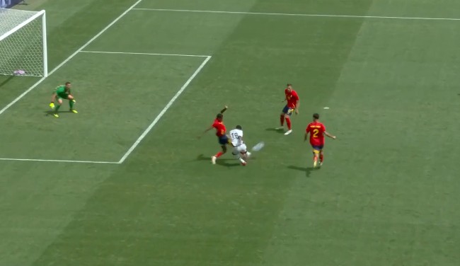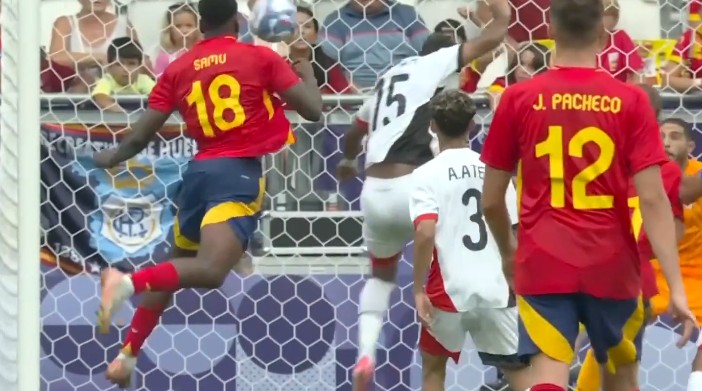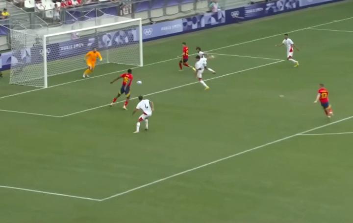 第90分钟,卡梅略斜传助攻,奥莫罗迪翁头槌破门,西班牙国奥1-2!