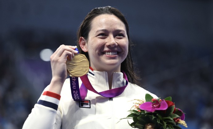 何诗蓓是中国香港游泳队的领军人物,创造了多个“第一”:2021年她在东京奥运会上赢得女子100米和200米自由泳银牌,是中国香港队首次获得奥运会游泳奖牌。2023年她在杭州亚运会女子200米自由泳比赛中折桂,收获中国香港队在亚运会游泳比赛中的历史首金。这次奥运会摘铜也使何诗蓓成为首位三夺奥运奖牌的中国香港运动员。