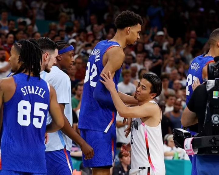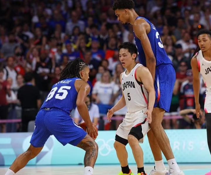 这位 20 岁的球员身高7英尺4英寸,在NBA和现在的国际舞台上几乎无人能防。在对阵日本队的比赛期间,文班亚马和对手之间令人惊叹的身高差距得到了充分展示。