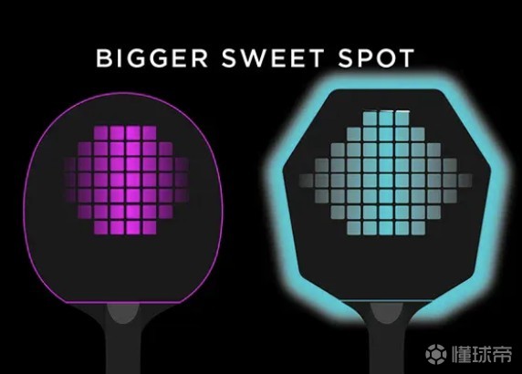 其独特的形状意味着击球区域距离桌子更近,这也是一个很大的优势,能够帮助球员更好地展现技术能力。该球拍的最佳击球区域也比传统球拍要大,球拍的重量也没有增加。