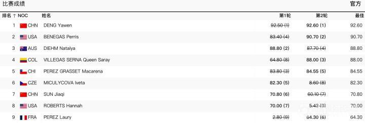 另一位中国00后小将孙佳琪以70.8分拿到第7名。