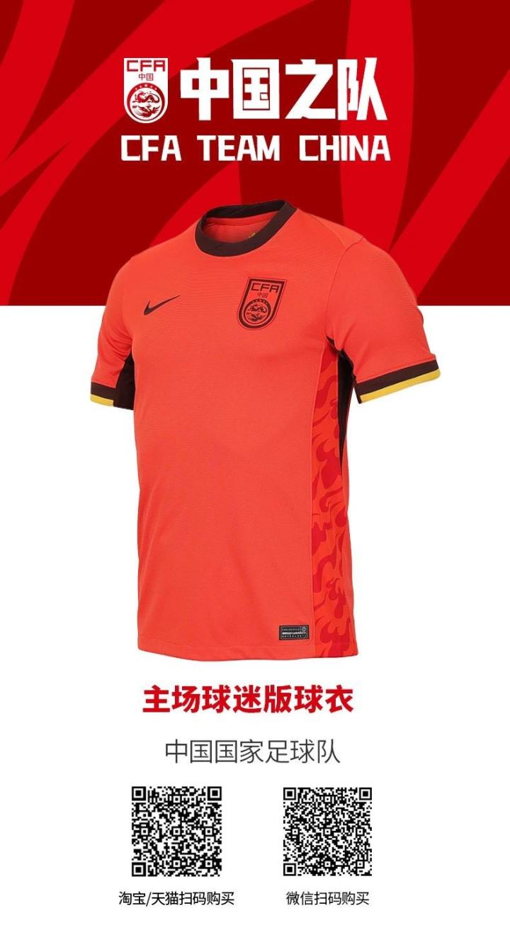 足球中国官方写道:中国国家男子足球队2024款主客场球迷版球衣正式发售,球迷朋友们可微信登陆福特宝球迷中心,在首页点击进入“会员商城——前往官方商城”即可购买!还可以进入“我的主场”天猫旗舰店下单购买!