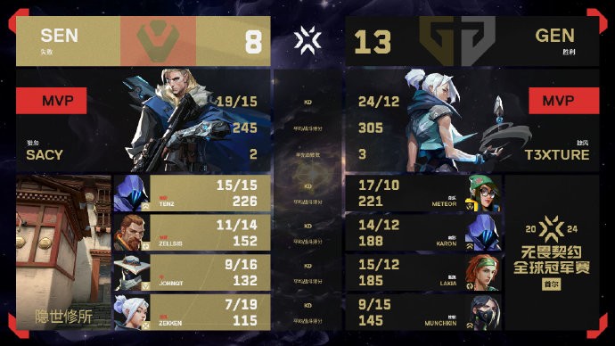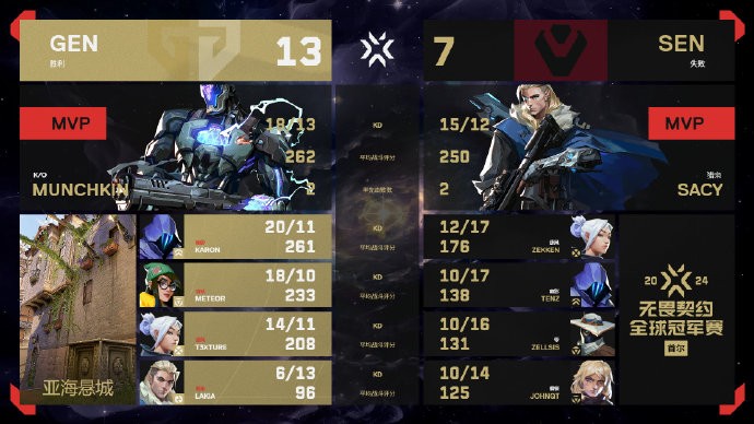 2024无畏契约冠军赛揭幕战:GEN 2-0横扫SEN取得开门红jam3young @懂球帝2024-08-01 19:16北京时间8月1日晚16:00,2024无畏契约全球总决赛正式开赛,在揭幕战上,GEN 2-0轻取SEN。图一 隐世修所 GEN 13:8 SEN MVP t3xture图二 亚海悬城 GEN 13:7 SEN MVP Munchkin展开更多