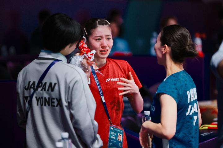 在场上拼杀的志田千阳,在场下其实是一个名副其实的“甜妹”。在2024尤伯杯决赛0-3完败中国队后,她也在场边流下泪水,惹人心疼的模样引得教练组和工作人员纷纷上来安慰。