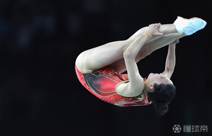 第13位出场的朱雪莹,在第一套动作中跳出55.950分;在第二套动作中,朱雪莹成功尝试了难度系数15.0的成套动作,获得56.720分,排名第一!