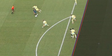 第37分钟,费尔明绊人破坏对方反击,主裁判予以口头警告
