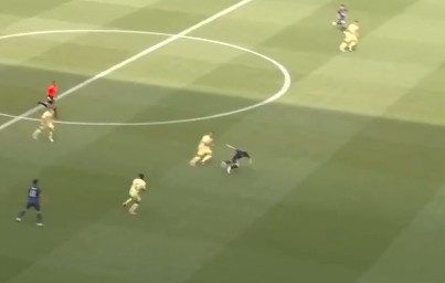 第58分钟,齐藤光毅铲倒巴埃纳,主裁判未判罚