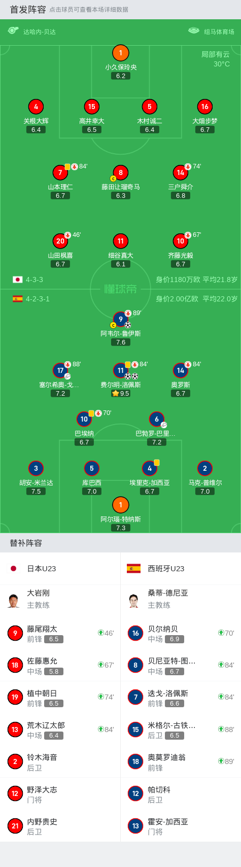 奥运男足西班牙3-0日本晋级四强,费尔明两轰世界波