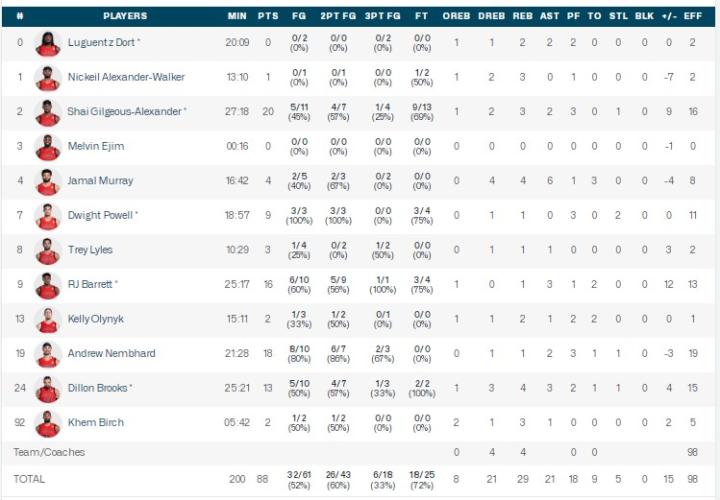 加拿大男篮亚历山大20分3板2助1断,内姆布哈德18分1板2助1断,RJ-巴雷特16分1板3助;