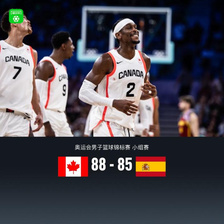北京时间8月3日,2024法国巴黎奥运会男篮小组赛第三轮加拿大男篮对阵西班牙男篮。上半场多数时间双方比分紧要,加拿大临近半场结束一波反击高潮拉大分差,上半场结束,加拿大49-38领先,下半场西班牙展开反扑,末节替补奇兵布里苏埃拉爆发,可惜未能逆转,最终加拿大男篮88-85西班牙男篮。加拿大小组赛三战全胜头名出线。西班牙与同组澳大利亚、希腊同为1胜2负,但因三队之间净胜分劣势垫底出局!