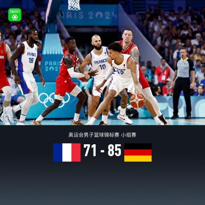 第四节,上来法国轰出一波11-0,德国迅速调整一波12-4再度拉大分差,比赛收尾段法国文班亚马掀起最后一波反扑,但德国施罗德立刻回应,比赛彻底失去悬念,最终法国男篮71-85不敌德国男篮。