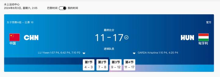 北京时间8月3日凌晨进行的巴黎奥运会女子水球小组赛末轮比赛中,中国队遭遇逆转11-17不敌匈牙利队,遭遇四连败小组垫底出局。