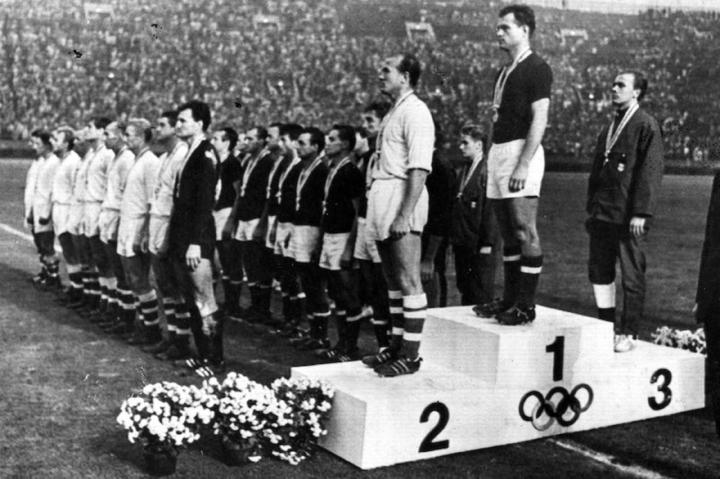 从1948年至1980年,苏联及东欧社会主义国家主导了奥运会足球比赛,28枚奥运足球奖牌中(1972年苏联和东德并列第三),除了瑞典获得1948年金牌和1952年铜牌、丹麦获得1948年铜牌和1960年银牌、日本获得1968年铜牌外,其他23枚奖牌均由社会主义阵营国家获得。