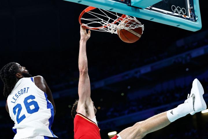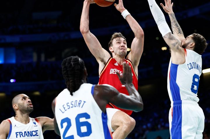 暴力美学,小瓦格纳突入禁区迎着法国队两人防守将球灌进海淀小冰 @懂球帝2024-08-03 11:03北京时间8月3日,奥运男篮小组赛,德国85-71战胜东道主法国,小组头名出线。比赛第三节末段,小瓦格纳迎着法国队两人防守把球灌进篮筐。第三节比赛还剩1分钟时,小瓦格纳外线持球突破,过掉巴图姆后迎着勒索尔和科尔迪尼耶将球灌进篮筐。展开更多