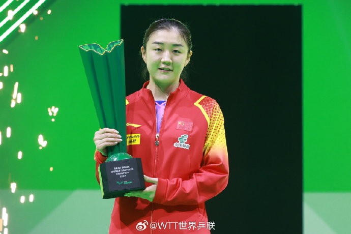 2021年底的WTT总决赛,孙颖莎4-2击败王艺迪夺冠,半决赛更是4-0横扫日本女单一号早田希娜——职业生涯孙颖莎9次对阵早田取得全胜。次年1月,孙颖莎首次登上世界排名第一的宝座,成为乒坛首位“00后”世界第一。2022年的总决赛,孙颖莎4-3苦战七局战胜陈梦夺冠,她仿佛终于捅破了那层窗户纸。随后一年孙颖莎迎来全面爆发,大小赛冠军不断,世界排名更是长期断层第一。2023年世乒赛,孙颖莎包揽女单、混双冠军,10月杭州亚运会,她获得女单、女团、混双冠军,其中女单项目是在队友提前出局的情况下守住全区。2024年,孙颖莎获得国际乒联(ITTF)世界杯女单冠军,单打大满贯听牌,只差奥运冠军就能实现大满贯。