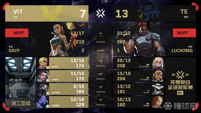 下半场TE输掉手枪局,随后TE抱团进B安包,依靠完美协同完成存钱分翻盘,FengF天秀枪法&身法拿下残局,7-7!此后heybay打出四杀,全员从沉闷的气氛中苏醒,TE 11-7领先。VIT被逼的连续喊出暂停,但再也无法扑灭TE步向胜利的焰火,TE拿下CN赛区在本届冠军赛的首胜!