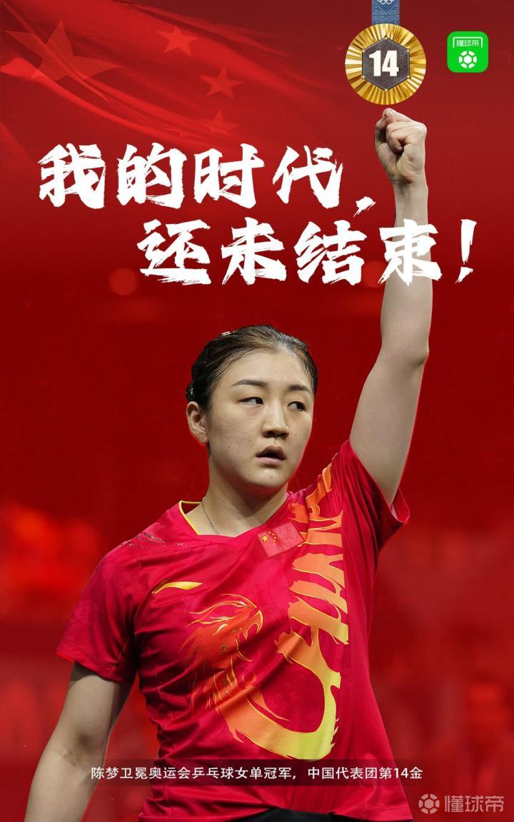 最终,陈梦以4-2(4-11、11-7、11-4、9-11、11-9、11-6)的比分逆转队友孙颖莎,成功卫冕奥运会乒乓球项目女单冠军!