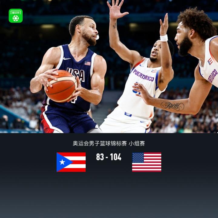 北京时间8月4日,2024法国巴黎奥运会男篮小组赛第三轮美国男篮对阵波多黎各男篮。本场美国男篮恩比德重回首发,首节美国男篮慢热落后5分,第二节美国男篮发力轰出39-16,半场结束领先19分,下半场美国男篮有所放松,双方呈现拉锯局面,最终美国男篮104-83轻取波多黎各,小组赛三战全胜头名出线!波多黎各三战全败小组垫底。