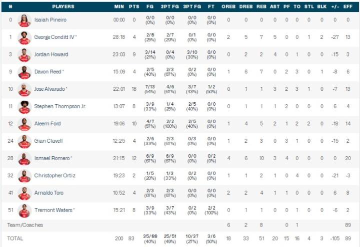 波多黎各男篮阿尔瓦拉多18分1板3助1断,伊斯梅尔-罗梅罗12分10板3助,阿莱姆-福特10分4板2助2断;