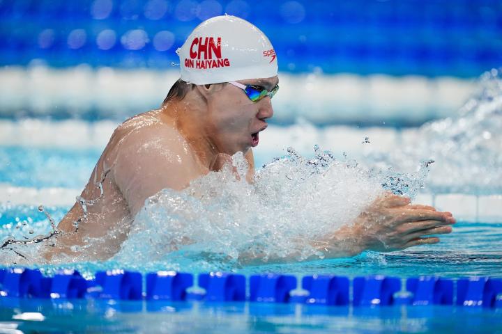如果覃海洋能以今天的成绩参加单项决赛的话,那么他将会毫无悬念地夺得冠军,那场决赛中最终夺冠的意大利选手尼科洛-马丁嫩吉的成绩是59秒03。