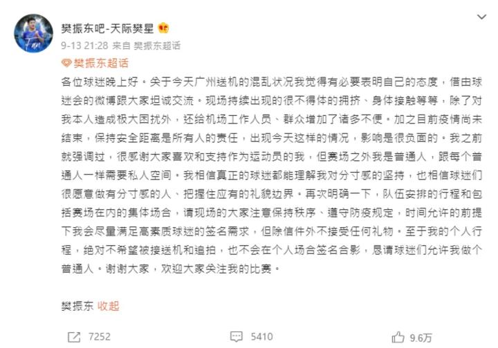 而在2021年9月,乒乓球运动员樊振东在机场遭遇粉丝围堵,场面一度失控,以至于樊振东不得不发文正告大家保持克制。