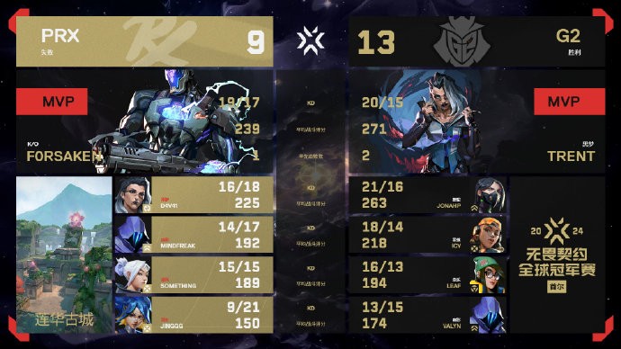 北京时间8月4日晚,2024无畏契约全球冠军赛继续进行,D组小组赛中CN赛区1号种子EDG 2-0力克EMEA赛区4号种子FUT,取得开门红;另外一场小组赛,G2 2-0战胜PRX。