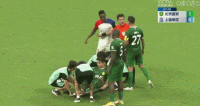 第24分钟,张玉宁被蒋圣龙踢中后出现不适,好在并无大碍