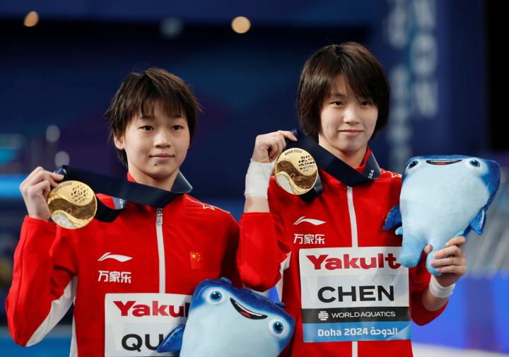 另外两名中国跳水小将陈芋汐和张家齐也以363.78分的成绩夺得跳水女子双人10米跳台的冠军。