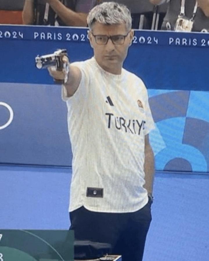 巴黎奥运会混合团体10米气手枪的比赛中,土耳其团队获得银牌,该国选手优素福-迪凯奇简单的比赛装备在网络上走红。