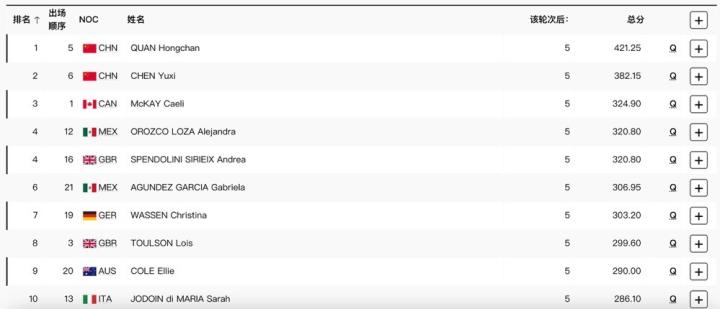 断档领先,全红婵、陈芋汐轻松晋级十米台跳水半决赛年轻人老杜 @懂球帝2024-08-05 18:02北京时间8月5日,巴黎奥运会女子10米台跳水预赛进行,中国选手全红婵、陈芋汐轻松晋级半决赛。在预赛中,全红婵以421.25分排名第一,陈芋汐以382.15排名第二,两人均以大幅优势晋级到了半决赛之中。女子10米台跳水半决赛将在北京时间今晚21:00进行。展开更多