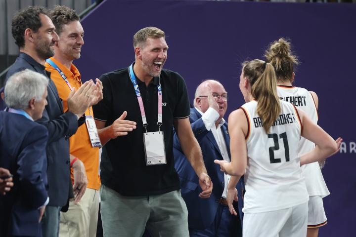 诺维茨基和大加索尔观战三人女篮决赛,德国1分险胜西班牙海淀小冰 @懂球帝2024-08-06 08:47北京时间8月6日凌晨,巴黎奥运会三人女篮决赛,德国17-16险胜西班牙,德国男篮名宿诺维茨基和西班牙男篮名宿保罗-加索尔亲临现场观战。比赛最后时刻,西班牙绝平球未能命中,德国队1分险胜对手,夺得巴黎奥运会三人女篮金牌。展开更多
