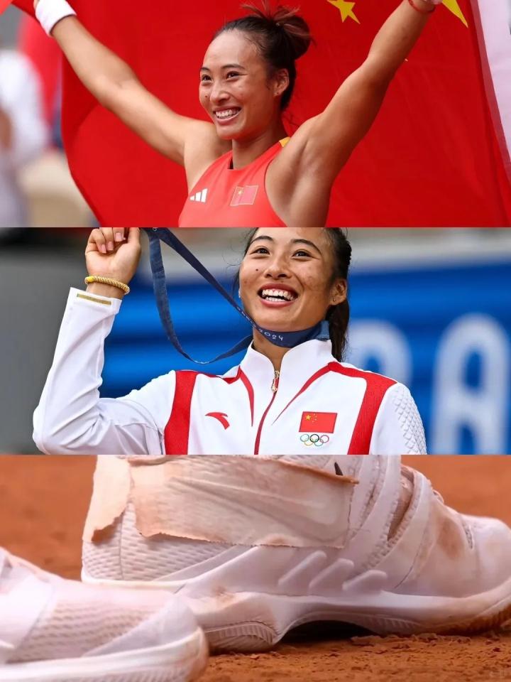 名场面,郑钦文比赛脚穿耐克、身披国旗穿阿迪、领奖穿安踏