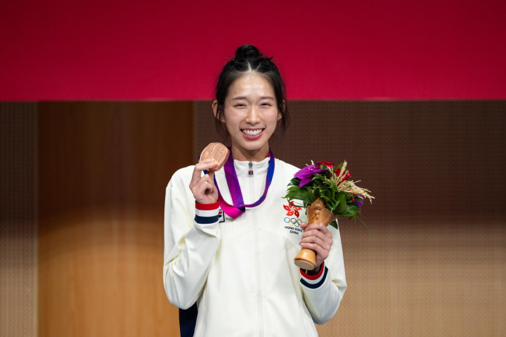 中国香港重剑选手江旻憓在夺得金牌后,因超高颜值火出体育圈,被称为“中国香港林志玲”。江旻憓笑容甜美,是学霸出身,才艺出众,自小学习过跆拳道、滑冰、古筝、绘画、钢琴。后来转战击剑,是因为她觉得重剑既有跆拳道的速度,也有芭蕾舞的优雅。