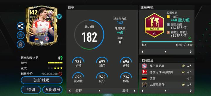 游戏中,鲁伊斯在欧洲杯活动中推出的欧洲杯最佳阵容球员基础能力值达到144。天赋配备了指南针,对他的盘带、控球等关键数据有所提升,花式方面,四星花式星级结合马赛回旋让他拥有了稳定的盘带表现。实战中,鲁伊斯高大的身材让他的对抗能力更加出色。防守端,鲁伊斯的正向冲抢破坏效果显著,防长传的预判拦截也很精准。进攻端,鲁伊斯的花式幅度较大,不过在反击中他的推进能力极强。