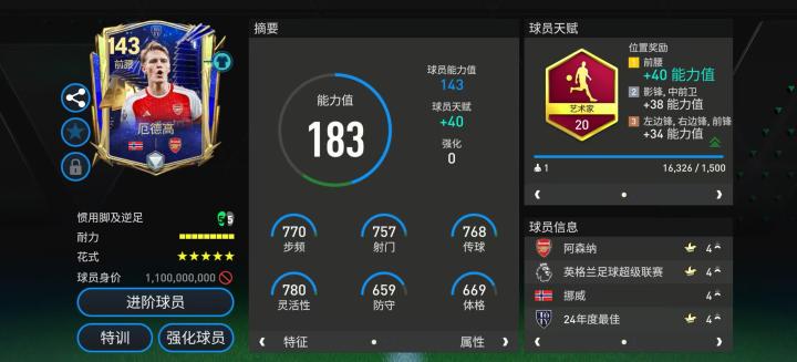 游戏中,厄德高在24年度最佳活动中推出了一张基础能力值143的球员卡。天赋配备了艺术家,对他的多项进攻端关键数据有所提升,花式方面,高达五星的花式星级结合马赛回旋让厄德高的持球进攻更加高效。实战中,厄德高的盘带手感灵活,连续花式衔接紧凑,擅长在多人包夹情况下的摆脱。得分方面,厄德高前插后的远射不仅起脚速度快,射门角度也很刁钻,在倒三角传中打法时可以频繁威胁球门。