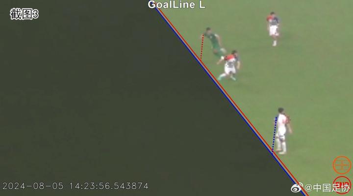 而北京国安队进球事件,裁判员做出的不是越位犯规以及进球有效的决定正确,VAR未介入正确。在此判例中,视频助理裁判员按照与上述相同的操作原则和操作程序,经3D划线,判断攻守双方队员身体有效部位与守方球门线距离几乎相等,即几乎平行。在3D划线中,双方划线之间无缝隙,几乎重叠,按照中超联赛统一判罚尺度精神,攻方队员不处于越位位置,这与裁判员初始决定一致,无需介入。由于现行VAR操作规范中未要求此类VAR未介入事件必须向转播方推送划线画面,视频助理裁判员现场未推送,不违反VAR操作相关原则,因此转播方无法播出划线画面。