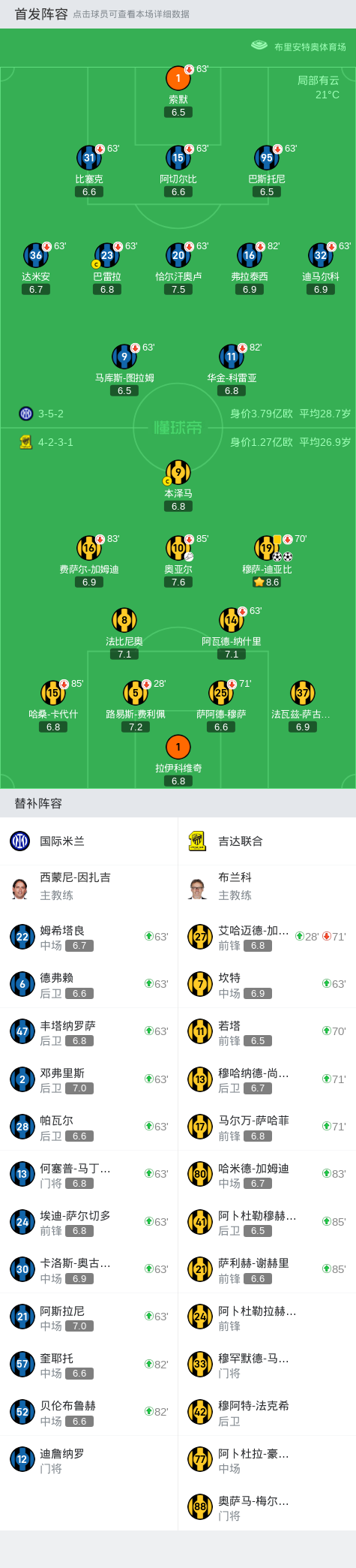 第63分钟,直接换一个队?国米进行超大幅度换人