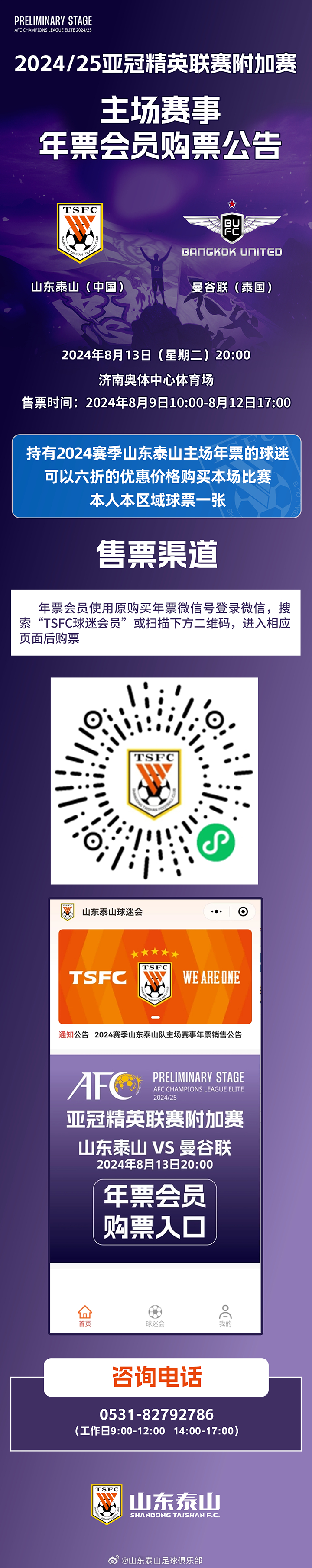 2024/25亚冠精英联赛附加赛主场赛事年票会员购票公告