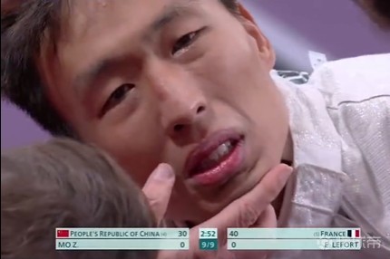 花剑选手莫梓维被法国选手击中面部,中国队最终团体赛第五名