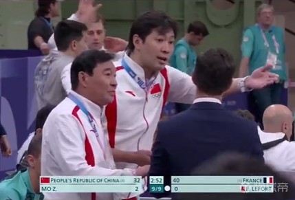 莫梓维受伤后,当时进行了短暂调整,莫梓维表示没有问题,可以继续比赛,但裁判长时间暂停了比赛,中国队教练团队也在向裁判申诉。