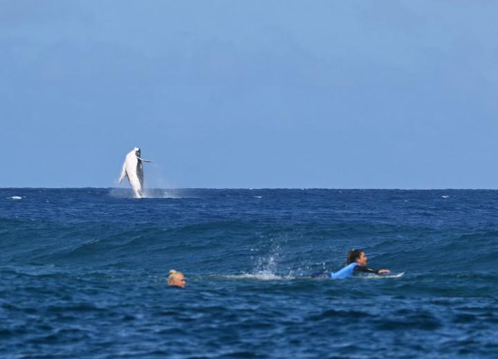 奥运冲浪比赛在法属波利尼西亚塔希提岛,也称大溪地附近的海域举行。这片海域是世界知名旅游胜地之一,每年7月至11月期间都是观鲸的好时节,各种迁徙的鲸鱼都会频繁出现在这个海域。