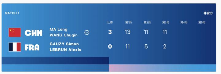 乒乓球男团半决赛:马龙/王楚钦完胜,中国1-0领先法国挪威球王阿热的经纪人 @懂球帝2024-08-08 16:47北京时间8月8日下午16点,巴黎奥运乒乓男团半决赛,中国队对阵法国队。首局比赛,马龙/王楚钦组合毫无悬念击败法国高茨/A-勒布伦组合,三小局分别为:13-11、11-5、11-2,中国队大比分1比0领先。展开更多