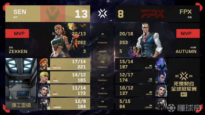第8回合,依旧是autumn前顶影响局势,4-4。FPX开启铁血防守模式,多点开花,以8-4结束上半场。