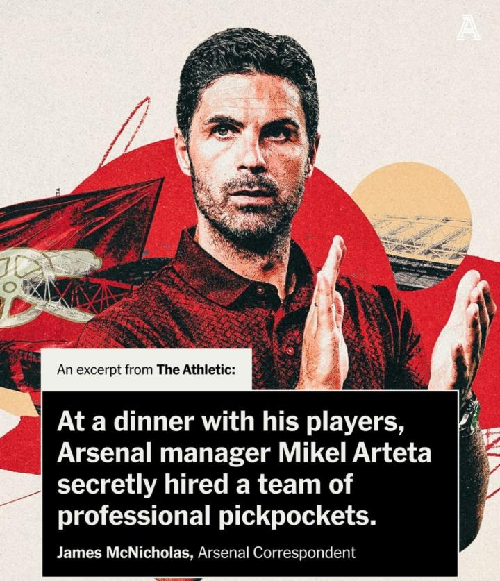 阿尔特塔请职业小偷在晚宴中偷球员们东西,以锻炼警觉性北伦敦小酒馆2024-08-08 17:45主教练阿尔特塔请职业小偷在晚宴中偷球员们东西,以锻炼他们的警觉性?(TA报道) 实际上,根据标准晚报的报道,阿尔特塔请的是职业演员而非真的小偷(想想也不可能请违法的人),不过这个创意确实是不错……展开更多