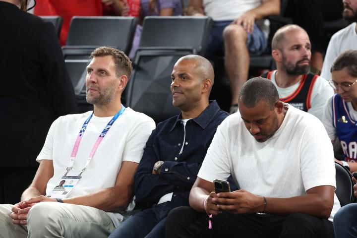 两位传奇,诺维茨基和托尼-帕克现场观战法国男篮vs德国海淀小冰 @懂球帝2024-08-09 00:02北京时间8月8日,奥运男篮半决赛法国vs德国的比赛正在进行,德国名宿诺维茨基和法国名宿托尼-帕克都来到现场观战。诺维茨基和托尼-帕克来到男篮半决赛法国vs德国的比赛场边,为各自的国家队助威。展开更多