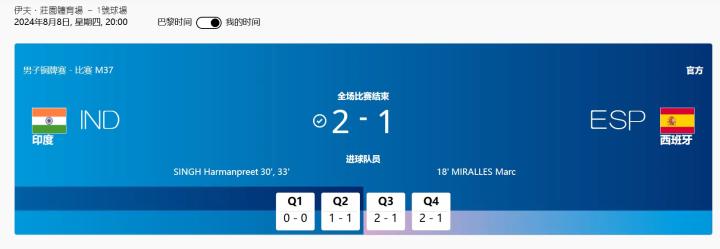 男子曲棍球铜牌战:印度2-1西班牙夺得本届奥运会第四枚铜牌ZeroTsu_02 @懂球帝2024-08-09 08:18北京时间8月8日晚间,巴黎奥运会男子曲棍球铜牌战在伊夫庄园体育场进行,最终印度2-1战胜了西班牙夺得铜牌。印度男子曲棍球队夺得的这枚铜牌是印度本届赛事的第四枚奖牌,同时这四枚奖牌也都是铜牌。在这场比赛中,身家1160亿美元的印度暨亚洲首富穆克什-安巴尼亲临现场,坐到看台上为印度男曲支持助威。在8月9日凌晨进行的男子标枪比赛中,印度选手乔普拉获得了一枚银牌,目前印度代表队共有5枚奖牌。展开更多