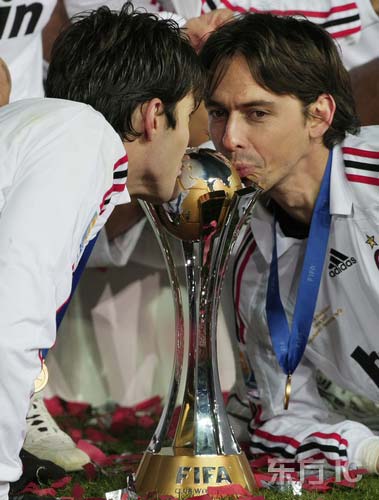 这次决赛堪称是因扎吉和卡卡的二人转,拥抱、背媳妇等庆祝后,两人趴在奖杯两侧激情亲吻的一幕成为经典中的经典!!!