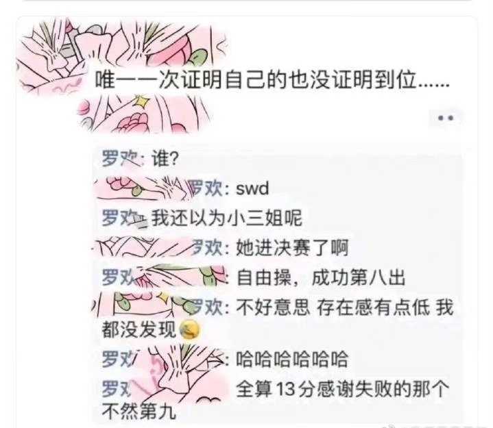 有网友晒朋友圈截图疑似吐槽苏炜德没抓住机会,罗欢在评论区回复称以为是“小三姐”,当对方表示“小三姐”进决赛后,两人又在评论区继续讨论,根据“自由操”、“决赛”、“第八名”等关键词,网友锁定他们口中的“小三姐”是欧钰珊。
