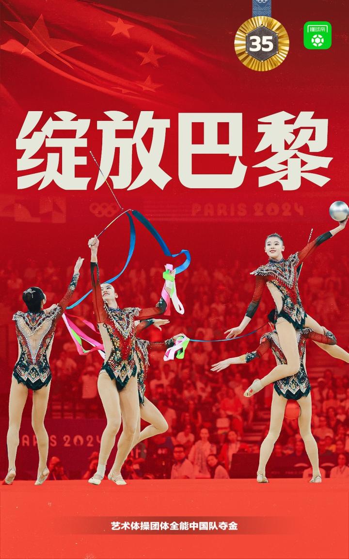 绽放巴黎!艺术体操团体全能比赛,中国队夺冠!这也是中国代表团在本届奥运会上的第35金!
