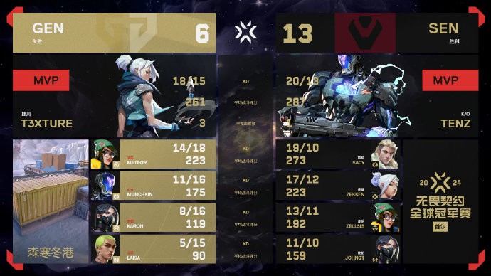 图二 森寒冬港 SEN 13:6 GEN MVP TenZ